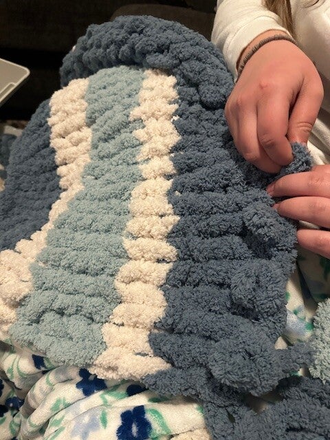 I found this page on FaceBook when I was looking for Christmas gifts. I reached out and immediately received a response back. Jen was super helpful and took the time to answer all of my questions . I received my first order and absolutely LOVE my blanket . I use it everyday. It’s soft, warm and the colors are amazing! I loved it so much I had to place a second order for more Xmas gifts. I highly recommend ordering from Maple Street Crafts if you want a chunky , soft, warm and beautiful blanket.