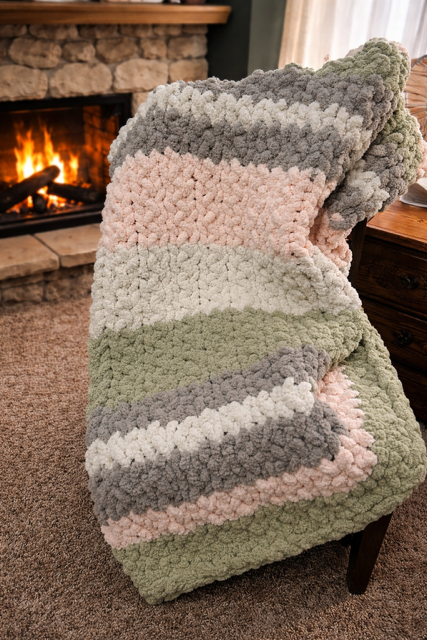 My neighbor at Maple Street Crafts hit the mark with the new blanket for my reading chair! It's pretty on both sides - and perfectly completed my reading nook vibe. Five stars. Highly recommend.